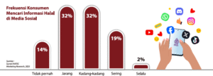 Meskipun media sosial diakui sebagai sumber informasi utama, temuan dari IHATEC Marketing Research menunjukkan adanya nuansa dalam seberapa sering konsumen benar-benar mencari informasi halal di platform tersebut. Data survei menunjukkan bahwa mayoritas konsumen hanya kadang-kadang, bahkan jarang mencari informasi halal secara spesifik di media sosial.